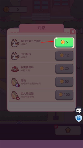 4、消耗金幣升級(jí)店鋪,解鎖我們的第二個(gè)客戶!等新內(nèi)容,拓展經(jīng)營(yíng)規(guī)模,提升店鋪等級(jí)。