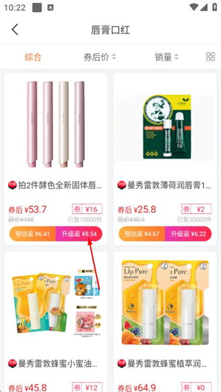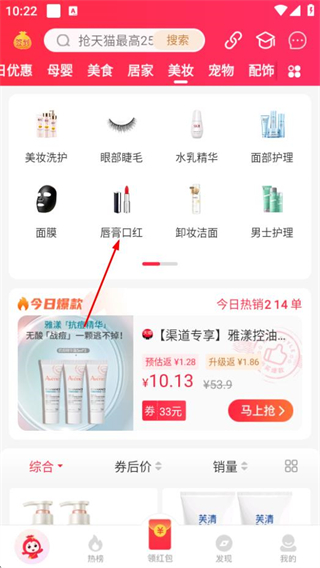 2、在該頁面,點擊唇膏口紅可進入唇膏口紅商品列表頁面。
