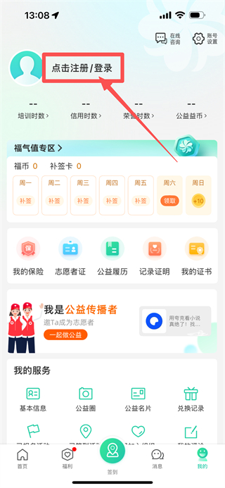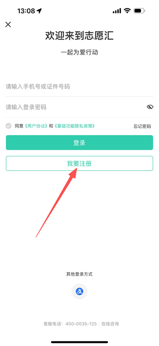 3、在登錄注冊(cè)頁(yè)面,點(diǎn)擊我要注冊(cè),進(jìn)入注冊(cè)成為志愿者頁(yè)面。