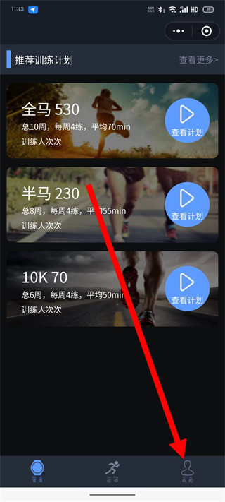 1、打開(kāi)宜準(zhǔn)跑步,點(diǎn)擊底部我的,進(jìn)入個(gè)人頁(yè)面。