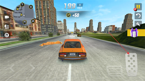 1、進(jìn)入城市駕駛地圖中,通過右下角的油門踏板控制車輛前進(jìn),剎車踏板控制車輛倒退急停操作。