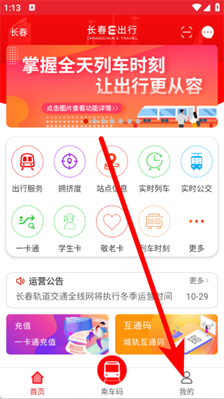 1、打開長春E出行,點(diǎn)擊底部導(dǎo)航欄我的,進(jìn)入個(gè)人頁面。