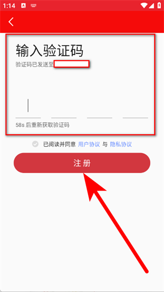 4、輸入收到的短信驗(yàn)證碼,點(diǎn)擊注冊(cè)按鈕,完成賬號(hào)登錄。