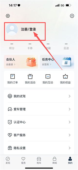 2、在個(gè)人頁(yè)面,點(diǎn)擊注冊(cè)/登錄,進(jìn)入登錄方式選擇頁(yè)面。