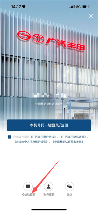3、在登錄方式選擇頁(yè)面,點(diǎn)擊短信驗(yàn)證碼,進(jìn)入手機(jī)號(hào)輸入頁(yè)面。