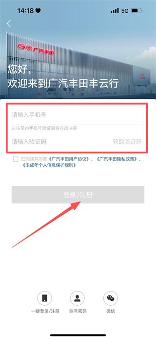 4、輸入手機(jī)號(hào),獲取驗(yàn)證碼并輸入后,點(diǎn)擊登錄/注冊(cè),完成賬號(hào)登錄或注冊(cè)操作。