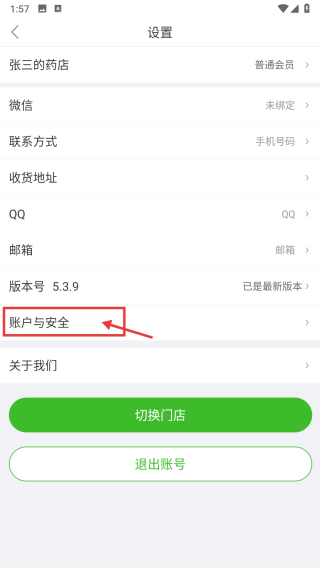3、在設置頁面,點擊賬戶與安全選項,進入賬戶與安全頁面。