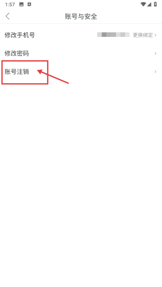 4、在賬戶與安全頁面,點擊賬號注銷選項,完成賬號注銷操作。