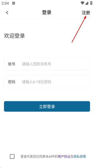 3、在登錄頁面,若還沒賬號,點擊注冊進(jìn)入注冊賬戶頁面。