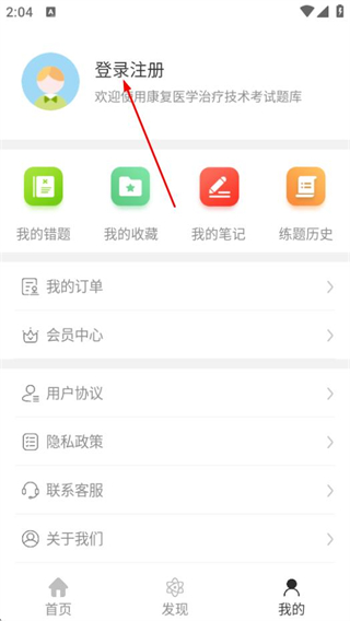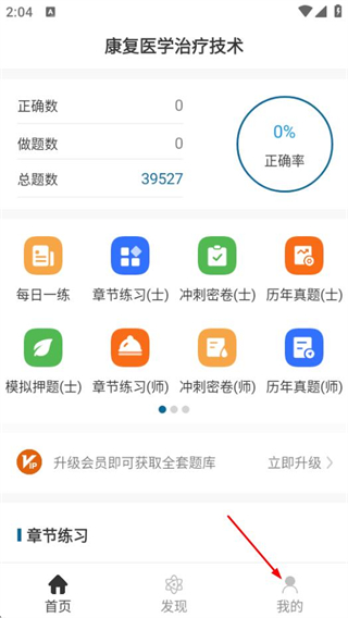 1、打開康復(fù)醫(yī)學(xué)治療技術(shù)智題庫,點擊我的,進(jìn)入個人中心頁面。