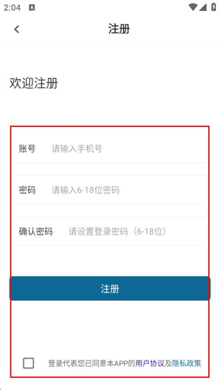 4、在注冊頁面,輸入信息,同意協(xié)議后點擊注冊,完成賬號注冊。