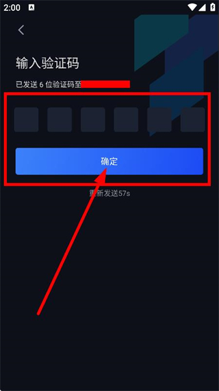 3、輸入短信驗證碼后點擊確定,完成賬號登錄或注冊操作。