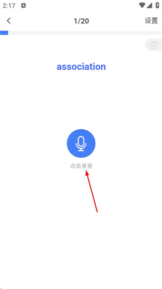4、在單詞練習(xí)頁面,點擊點擊錄音,可進行單詞發(fā)音練習(xí)。