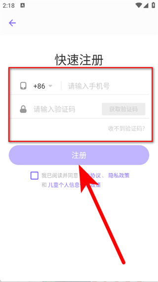 4、輸入手機(jī)號(hào)碼,點(diǎn)擊獲取驗(yàn)證碼并輸入收到的短信驗(yàn)證碼,勾選后,點(diǎn)擊注冊(cè)按鈕,完成注冊(cè)。