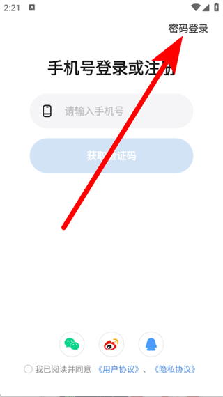 1、打開(kāi)okok體脂秤,在登錄頁(yè)面,點(diǎn)擊密碼登錄。