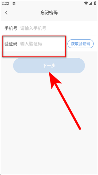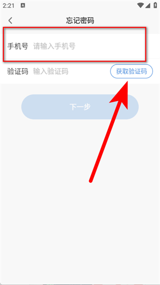 3、進(jìn)入密碼頁(yè)面,輸入手機(jī)號(hào)碼,點(diǎn)擊獲取驗(yàn)證碼。
