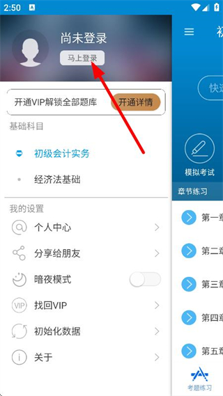2、在側(cè)邊欄,點(diǎn)擊馬上登錄,進(jìn)入用戶登錄頁面。