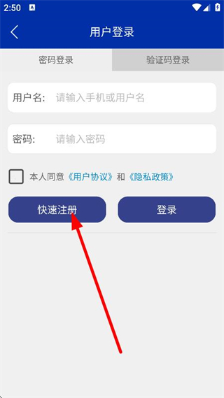 3、在用戶登錄頁面,點(diǎn)擊快速注冊(cè),進(jìn)入用戶注冊(cè)頁面。