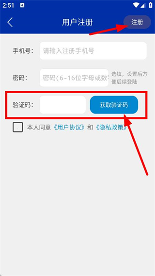 5、隨后獲取驗(yàn)證碼并輸入,點(diǎn)擊注冊(cè),完成賬號(hào)注冊(cè)操作。