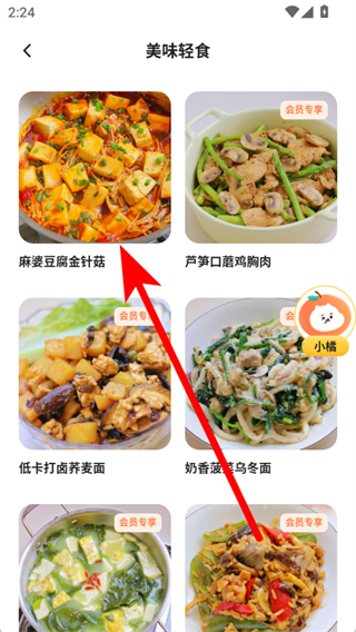 2、在食譜頁面,點(diǎn)擊美味輕食,進(jìn)入美味輕食列表。
