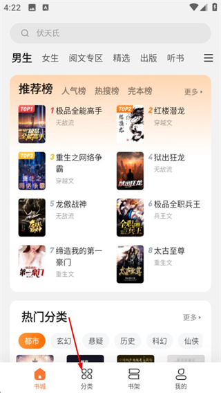 1、打開多看,在首頁點擊分類,進入書籍分類頁面。