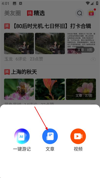 2、在創(chuàng)作功能選項(xiàng)中,點(diǎn)擊文章,進(jìn)入圖片選擇頁(yè)面。