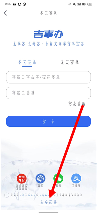 2、在個(gè)人登錄頁面,點(diǎn)擊立即注冊,進(jìn)入注冊頁面。