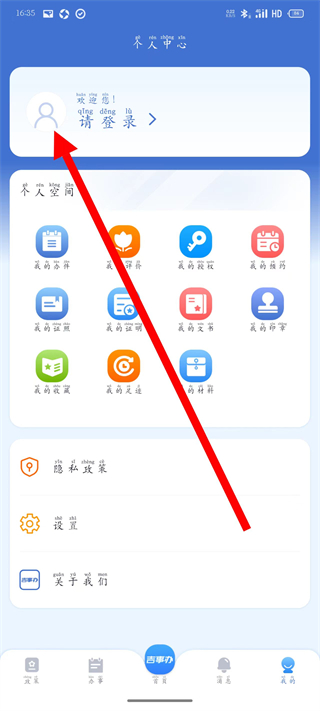 1、打開吉事辦,進(jìn)入個(gè)人中心頁面,點(diǎn)擊請登錄。