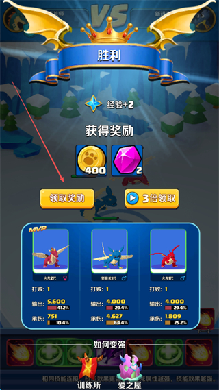 4、戰(zhàn)斗勝利后,領(lǐng)取經(jīng)驗(yàn)、金幣、寶石等獎(jiǎng)勵(lì),用于升級(jí)龍、解鎖新技能或培養(yǎng)更強(qiáng)的龍陣容,繼續(xù)挑戰(zhàn)更高難度的關(guān)卡。