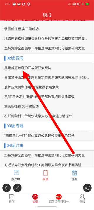 2、在讀報目錄頁面,點擊需要的要聞,進(jìn)入詳情頁頁面。