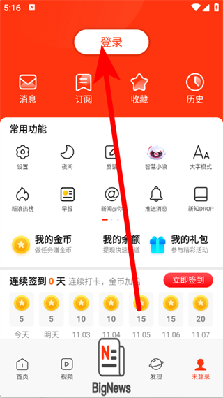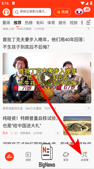1、打開新浪新聞,點(diǎn)擊底部導(dǎo)航欄未登錄,進(jìn)入個人頁面。