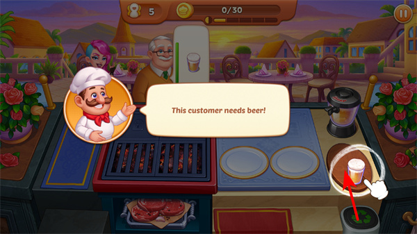 3、關(guān)注顧客需求,如需要啤酒時,點擊對應(yīng)飲品為顧客提供,飲品是提升顧客滿意度的重要元素,合理供應(yīng)可增加收益。