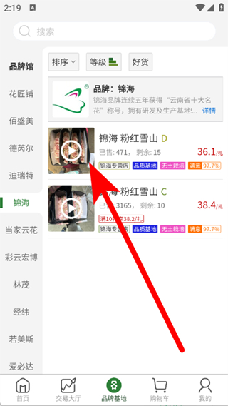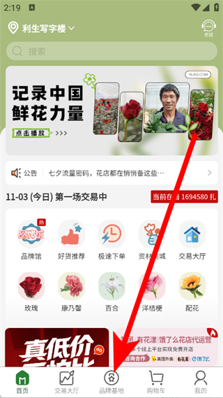 1、打開花伍鮮花,點擊底部品牌基地,進入品牌館頁面。
