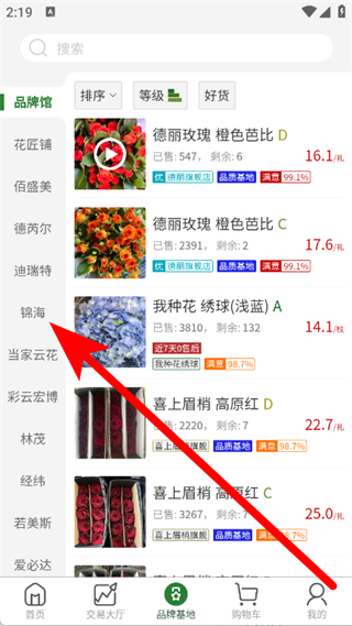 2、在品牌館列表中,選擇錦海品牌,進入其商品列表頁。