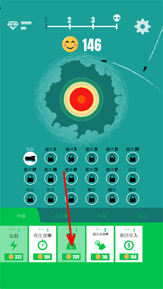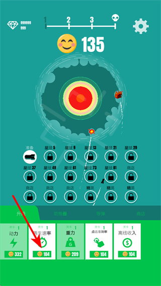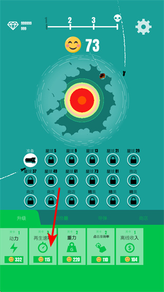 4、持續(xù)升級再生速率等屬性,通過不斷提升各項能力,可讓物體的運行和得分效率大幅提升,快速推進游戲進程。