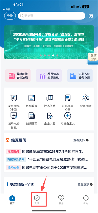 1、打開(kāi)能源資訊類(lèi)APP首頁(yè),點(diǎn)擊底部資訊選項(xiàng),進(jìn)入資訊頁(yè)面。