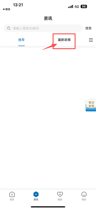 2、在資訊頁(yè)面,點(diǎn)擊最新政策板塊,進(jìn)入最新政策列表頁(yè)面。