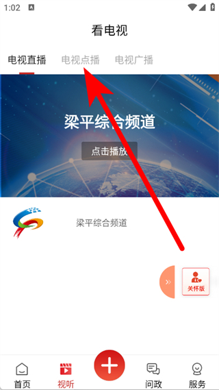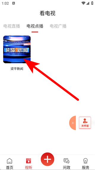 3、在電視點(diǎn)播頁面,點(diǎn)擊梁平新聞,進(jìn)入列表。
