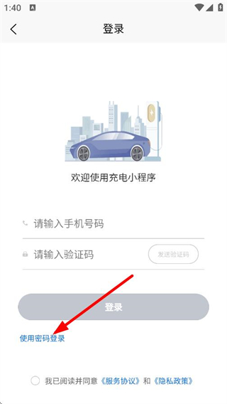 3、在登錄頁(yè)面,點(diǎn)擊使用密碼登錄,切換到密碼登錄模式。