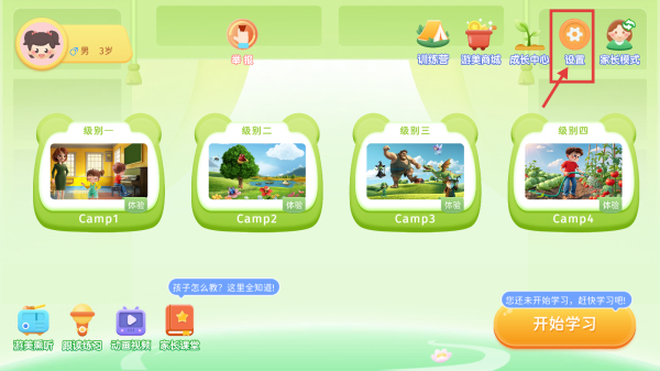 1、打開教育類APP首頁,點(diǎn)擊設(shè)置選項(xiàng),進(jìn)入設(shè)置頁面。