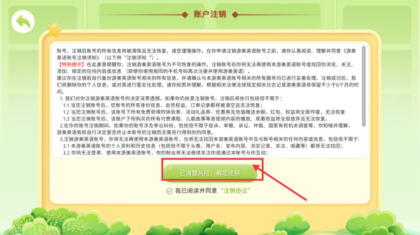 3、在賬戶注銷頁面,點(diǎn)擊已知風(fēng)險(xiǎn),確定注銷按鈕。