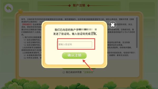 4、輸入收到的驗(yàn)證碼,點(diǎn)擊確認(rèn)注銷按鈕,完成賬戶注銷操作。