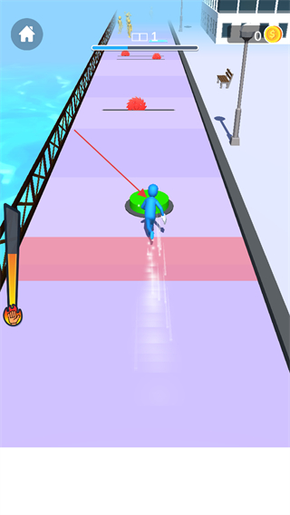 2、在地圖中有一些綠色按鈕,踩上去會(huì)觸發(fā)機(jī)關(guān)擊飛追逐在身后的小人。