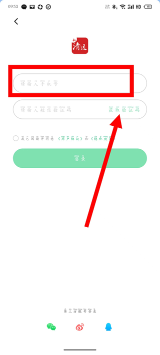 3、在登錄頁面,輸入手機(jī)號(hào),點(diǎn)擊獲取驗(yàn)證碼。