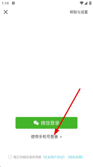 2、在登錄選擇頁面,點擊使用手機號登錄,進入驗證碼登錄頁面。