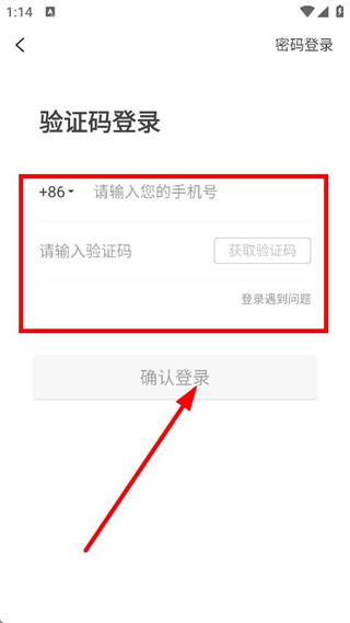 3、輸入手機號,獲取驗證碼并輸入,點擊確認登錄,完成賬號登錄操作。