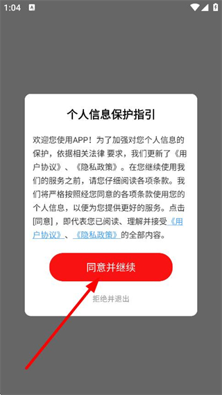 1、在個(gè)人信息保護(hù)指引彈窗中,點(diǎn)擊同意并繼續(xù),進(jìn)入登錄選擇頁面。