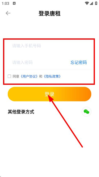 3、在賬號登錄頁面,輸入手機(jī)號碼和密碼,點(diǎn)擊登錄,完成賬號登錄操作。