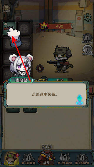 2、點擊選中裝備,裝備選擇是提升戰(zhàn)力的核心步驟,選中合適的裝備可增強角色的攻擊、防御等屬性,助力戰(zhàn)斗。