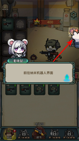 4、前往納米機器人界面,納米機器人系統(tǒng)是強化角色的重要功能,進入后可解鎖或升級納米機器人,進步提升戰(zhàn)力。